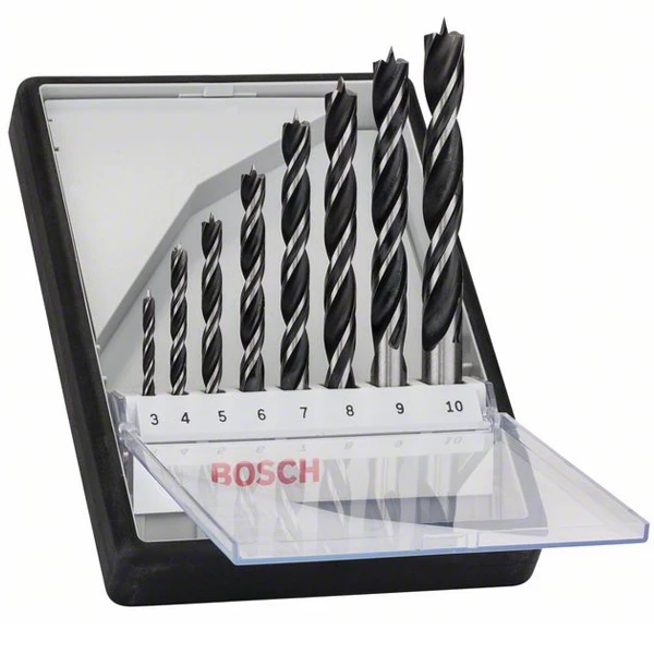 Coffret de 8 mèches à bois hélicoïdales Bosch Robuste Line.